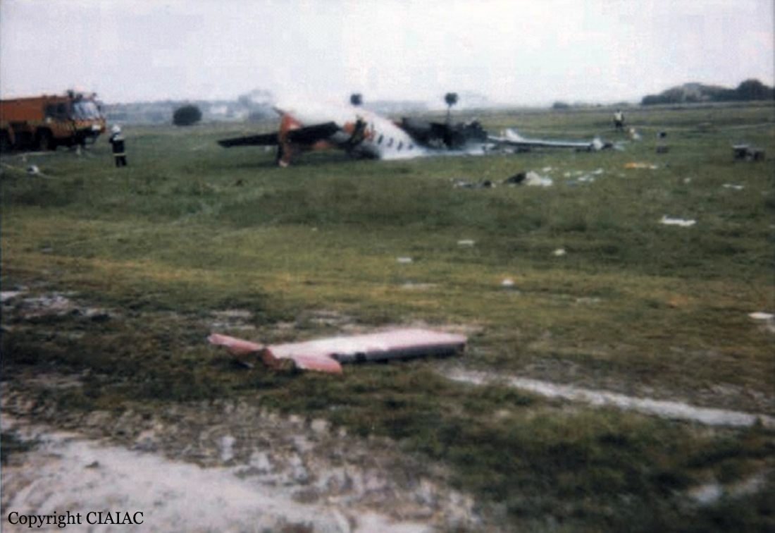 The twin engine aircraft departed Madrid-Barajas Airport at 0338LT on a cargo flight to Palma de Mallorca, carrying two pilots and a load of 1,340 kilos consisting of various goods. On a night approach to Palm Airport runway 24L, the crew completed a last turn when the aircraft stalled and struck the runway surface. Out of control, it veered to the right, collided with a lightning system and came to rest upside down in a grassy area. The aircraft was destroyed and both pilots were killed.