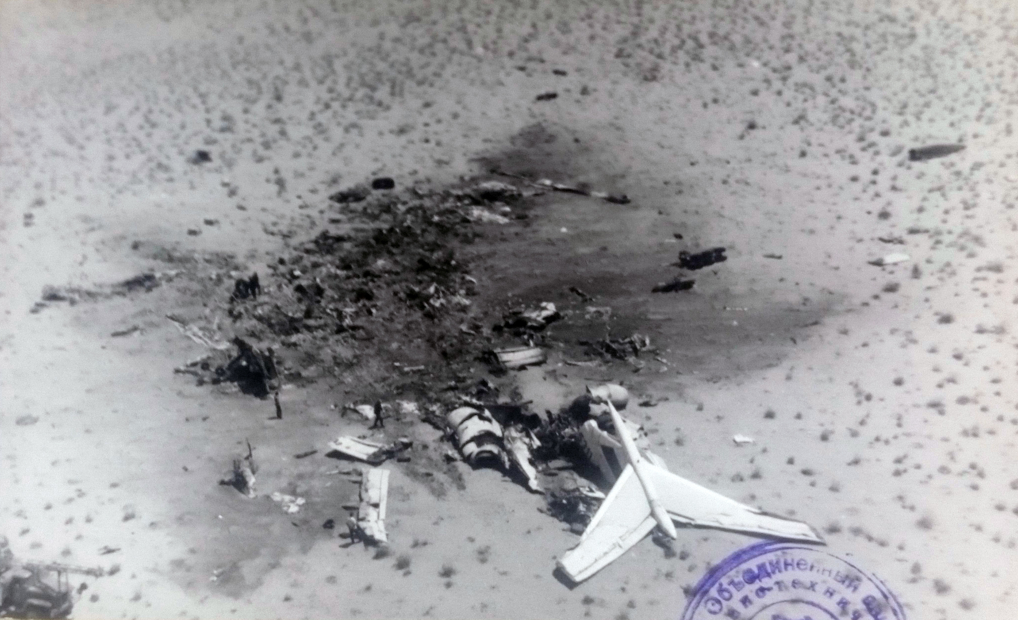 After takeoff from Karsi Airport, the aircraft climbed at an insufficient speed of 470 km/h with a max speed of 515 km/h. The cruising altitude of 11,600 meters was reached after 40 minutes and 20 seconds. The speed dropped to 400 km/h then the aircraft reached a critical angle of attack (+20°) when vibrations started. The crew misinterpreted these vibrations and failed to judge properly the situation in reducing the engine power to idle. The speed dropped to 290 km/h when the aircraft stalled and entered a spin. The aircraft eventually went into a flat attitude and crashed in an isolated and desert area located in the region of Ushquduq. The aircraft was totally destroyed upon impact and all 200 occupants were killed.