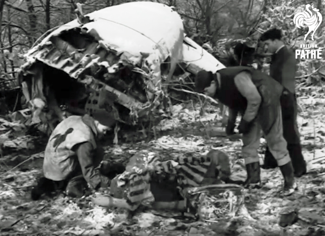 The crew was flying back to his base at RAF Thorney Island after he took part to a rugby game at RAF Bovingdon. The departure was completed in poor weather conditions with low visibility due to snow falls. While climbing to a height of 400 feet, the pilot-in-command made a turn to the left when the aircraft hit trees and crashed in a wooded area located five miles north of the airfield. A passenger was seriously injured while 16 other occupants were killed. The aircraft was destroyed upon impact, except the rear part of the fuselage.