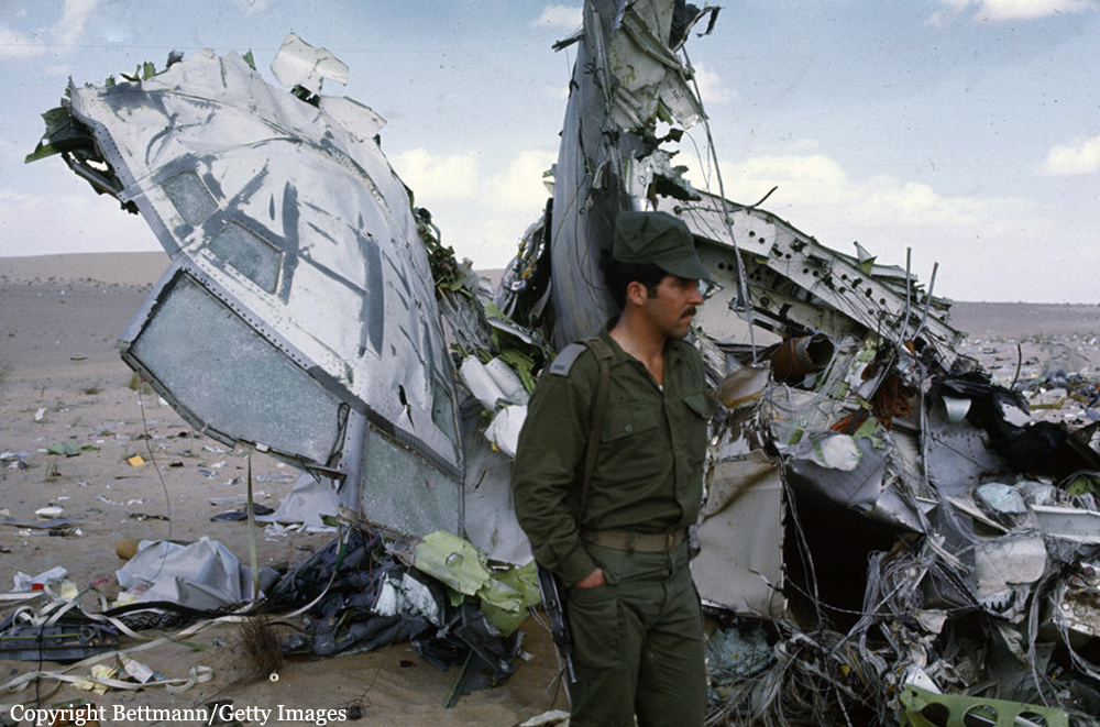 Flight 114 was an international scheduled service from Tripoli to Bahrain with intermediate stops in Benghazi and Cairo. On board were 104 passengers and a crew of nine, five from Air France, among them the captain, Mr. Jacques Bourgès, aged 42. Normally, the Benghazi – Cairo route was flown eastwards along the Libyan coast until reaching the city of Sidi Barrani in Egypt, where the airway turned inland to the VHF omnidirectional range (VOR) and Non-Directional Beacon (NDB) area located west of Lake Qarun. The entry to the Cairo terminal area was made on a north-easterly heading over a 71-nautical-mile (131 km) long path that separated Lake Qarun from the Cairo VOR. At 13:45 the Cairo traffic control (CTC) saw the aircraft approaching from the west. Permission was granted to land in runway 23. CTC surprisingly saw the Boeing heading eastward towards the Suez Canal at 13:50. Evidence from both the recovered Boeing 727 voice recorders and the Israeli authorities' flight data recorder later showed that the Libyan aircraft was likely to had been already off course when it reported its position over Qarun, probably due to strong westerly upper-level winds associated to a low level sandstorm. The crew was forced to rely on instrument navigation because of this sandstorm. Both instrument and navigational error caused the aircraft to go off course, entering airspace dominated by Israel when flying over the Sinai Peninsula. By this time the aircraft had been lost from the Egyptian air traffic control. The crew believed they were close to the destination airport and started the descent. At 13:55 the aircraft was detected in the radar by the Israelis as it was entering Israeli airspace; it was located south-east of Suez at an altitude of 15,000 feet (4,600 m). Two Israeli Air Force Phantoms were sent to intercept the then unidentified aircraft. Following the re-establishment of communications with CTC the pilot of the Libyan aircraft looked through the cabin's port window and saw the fighters, but he mistook them for Egyptian MiGs. The Libyan aircraft continued flying deeper into the Sinai at a speed of 325 miles per hour (523 km/h), but it suddenly veered to the west. It was at that time that the Boeing's crew realised they were having problems with their instruments. The Israeli fighter pilots attempted to make visual contact with the passenger airliner's crew, and tried to communicate to them by signaling with their hands and dipping their wings. The 727 crew's response was interpreted as a denial of that request. The 727 adopting a westward course was interpreted by the Israeli pilots as an attempt to flee. The Israeli Phantom pilots fired bursts from their 20 mm M61 cannons, severely damaging the airliner's control surfaces, hydraulic systems, and wing structure. Flight 114 attempted an emergency landing in an area covered with sand dunes, but crashed, with an explosion near the right main landing gear. Four passengers and the copilot survived while 108 other occupants were killed. The copilot later said that the flight crew knew the Israeli jets wanted them to land but relations between Israel and Libya made them decide against following instructions. In direct contradiction to the co-pilot's own account, the Libyan government stated that the attack occurred without warning. Israel's air force perceived Flight 114 as a security threat, and that among the possible tasks it could have been undertaking was an aerial spy mission over the Israeli air base at Bir Gifgafa. The Israeli government also revealed that LN114 was shot down with the personal authorization of David Elazar, the Israeli Chief of Staff. Israel's argument was that the heightened security situation and the erratic behaviour of the jet's crew made the actions taken prudent. The United Nations did not take any action against Israel. The 30 member nations of the International Civil Aviation Organization (ICAO) voted to censure Israel for the attack. The United States did not accept the reasoning given by Israel, and condemned the incident. Israel's Defense Minister, Moshe Dayan, called it an "error of judgment", and Israel paid compensation to the victims' families.