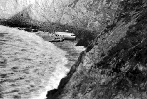 While flying at night, the crew failed to realize that he was following the wrong track to Oakland and was now over the sea. Both engines failed in flight, forcing the pilot to ditch the airplane off Point Reyes. Five occupants were killed, among them two crew members. The captain and a passenger survived.
