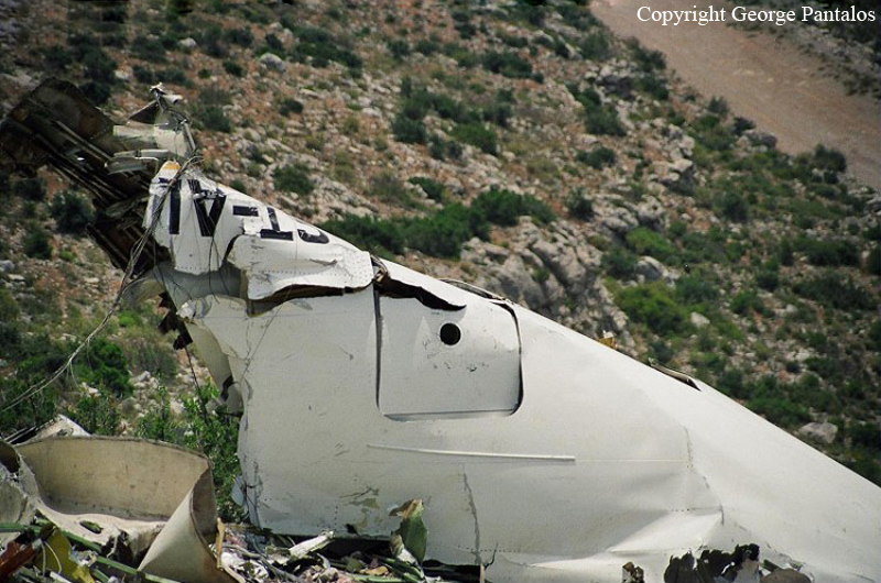 2 was slumped over the controls, the passenger oxygen masks were seen dangling and three motionless passengers were seen seated wearing oxygen masks in the cabin. No external damage or fire was noted and the aircraft was not responding to radio calls. At 08:49 h, he reported a person not wearing an oxygen mask entering the cockpit and occupying the Captain’s seat. The F-16 pilot tried to attract his attention without success. At 08:50 h, the left engine flamed out due to fuel depletion and the aircraft started descending. At 08:54 h, two MAYDAY messages were recorded on the CVR. At 09:00 h, the right engine also flamed out at an altitude of approximately 7 100 ft. The aircraft continued descending rapidly and impacted hilly terrain at 09:03 h in the vicinity of Grammatiko village, Hellas, approximately 33 km northwest of the Athens International Airport. The 115 passengers and 6 crew members on board were fatally injured. The aircraft