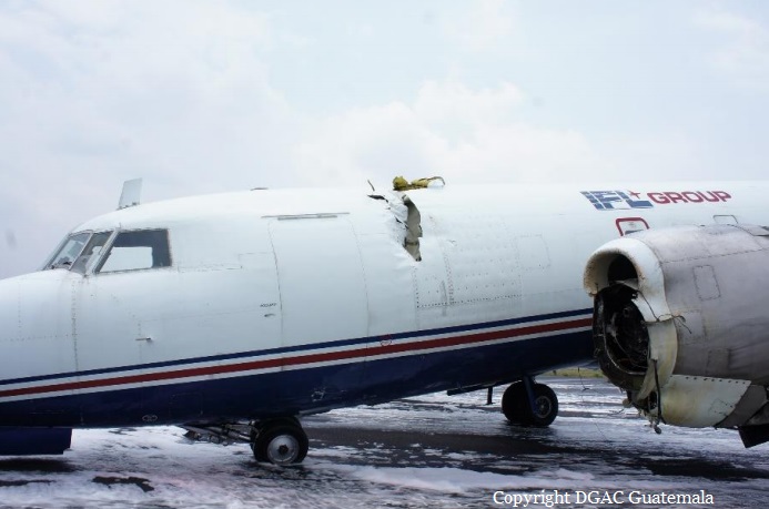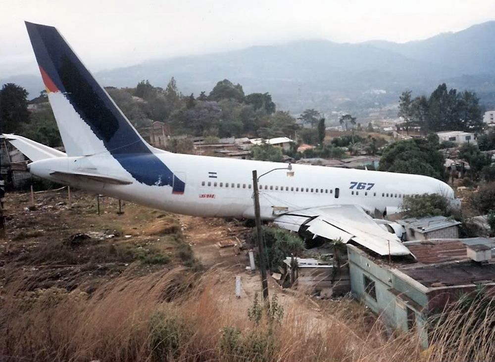 The airplane was engaged in an humanitarian flight from Guatemala City to Cobán, carrying one pilot, one passenger and a load consisting of food and essential products. After takeoff from Guatemala City-La Aurora runway 02, while in initial climb, the airplane entered an uncontrolled descent, impacted trees and high tension wires before crashing in the 4th Avenue located in the Zone 9 district, approximately 980 metres from the end of runway 02. The aircraft was destroyed by impact forces and a post crash fire and both occupants were killed.