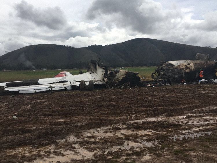 The aircraft departed Lima-Jorge Chavez Airport on a 20-minute flight to Jauja, carrying 142 passengers and 7 seven crew members. The approach to Jauja-Francisco Carlé was uneventful and completed in good weather conditions. Two seconds after the nose gear touched down on runway 31, the crew activated the reverse systems when he felt strong vibrations and oscillations. The aircraft started to bounce and became uncontrollable. The right main gear collapsed then the aircraft veered off runway to the right, lost its right engine and came to rest in a grassy area, bursting into flames. All 149 occupants evacuated safely and the aircraft was totally destroyed by fire.