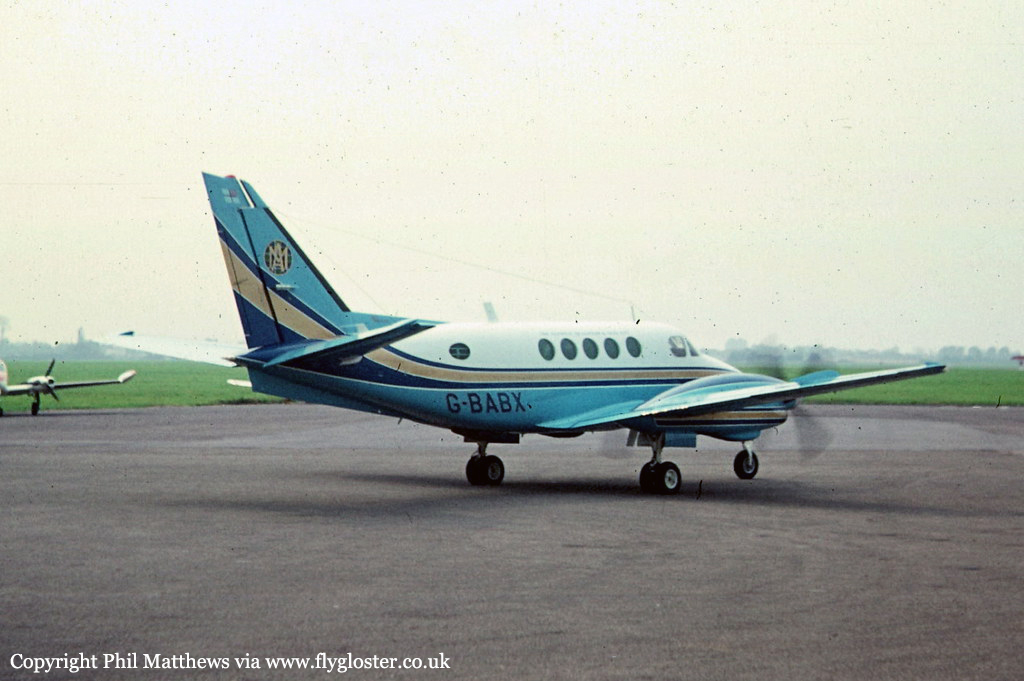 About 50 minutes into the flight, the aircraft returned to Humberside circuit and was cleared by ATC for a touch-and-go landing on Runway 21. The landing was firm but otherwise uneventful and witnesses heard the power being applied as it accelerated for takeoff. Just before rotation two large "puffs of smoke" were seen to come from the vicinity of the mainwheels as both propellers struck the runway. The aircraft then lifted off and almost immediately began to yaw and roll to the left. The left bank reached an estimated maximum of 90° but reduced just before the left wing tip struck the ground. The aircraft then cartwheeled across the grass to the south of the runway and burst into flames. The owner in the left pilot's seat and the pilot in the right pilot's seat escaped from the wreckage, but the flight examiner, who was occupying a seat in the passenger cabin, was unable to vacate the aircraft and subsequently died of injuries sustained in the post impact fire. An engineering investigation found no fault with the aircraft that might have caused the accident. The investigation concluded that the most probable cause was an inadvertent retraction of the landing gear whilst the aircraft was still on the ground.