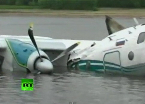 En route from Kedrovy to Tomsk, while cruising at an altitude of 12,000 feet in icing conditions, both engines failed simultaneously. The crew tried to restart both engines, without success. In such conditions, the crew reduced his altitude and attempted an emergency landing in the taiga. Upon impact, the flipped over and came to rest upside down. The wreckage was found around 1430LT some 52 km southeast of Kedrovy. All 17 occupants were found alive, among them few were injured. The captain broke one of his leg. The aircraft was damaged beyond repair.